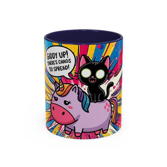 Giddy Up There's Chaos To Spread, Unicorn Cat Design - (11oz or 15oz) Coffee Mug