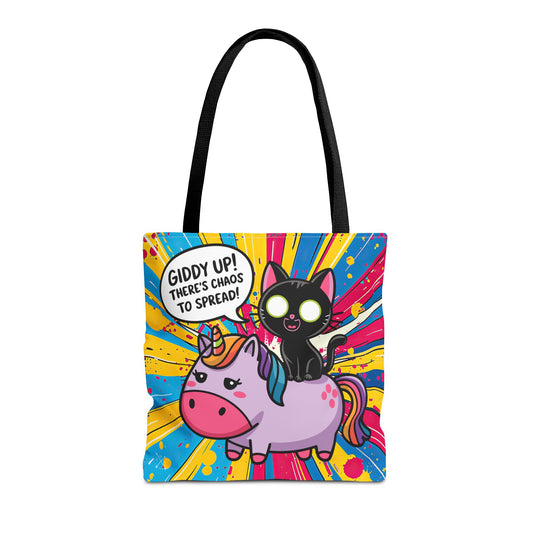 Giddy Up There's Chaos To Spread, Unicorn and Black Cat - Tote Bag