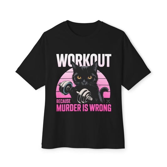 Unisex Funny Cat Workout Tee - Oversized Boxy T-Shirt