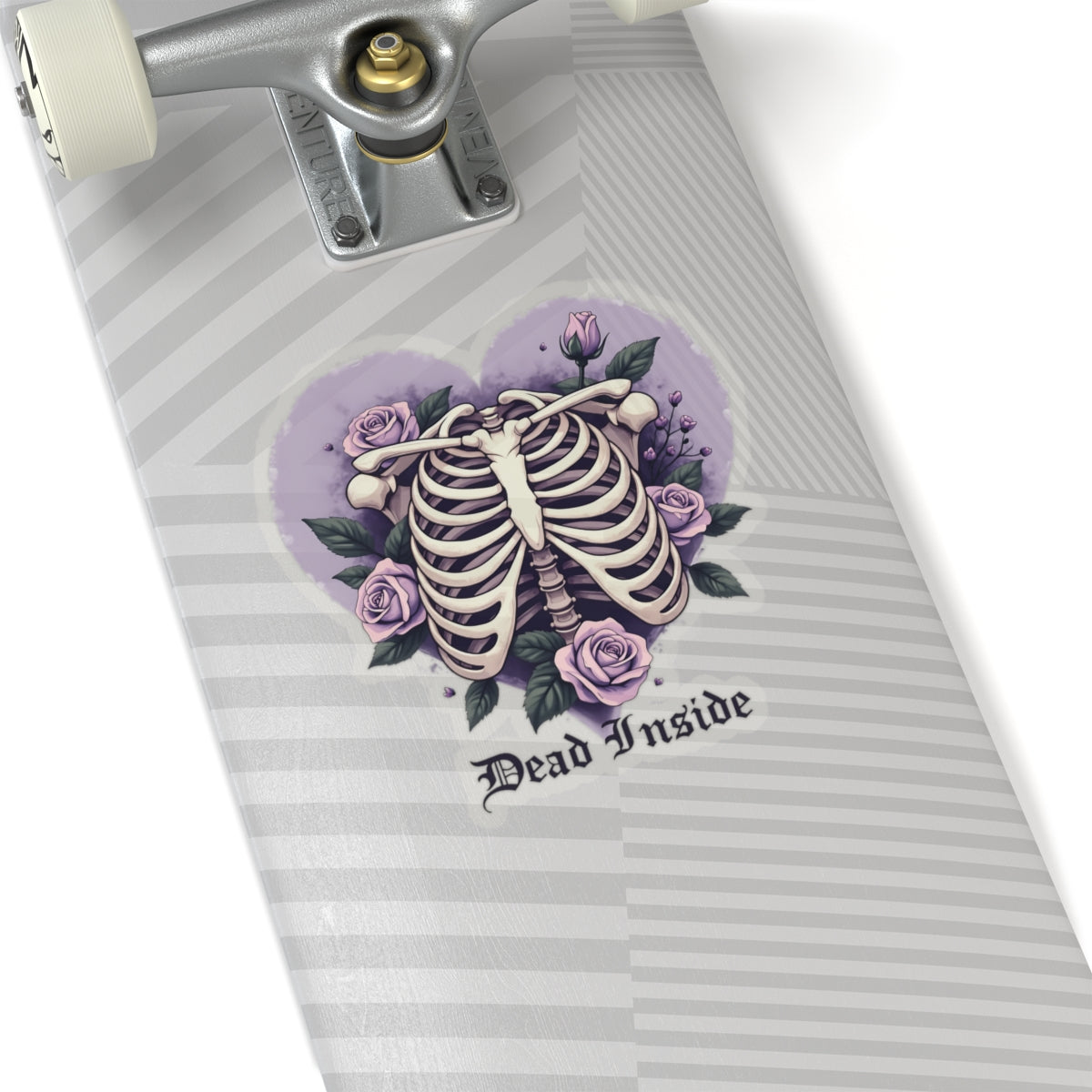 Show off your inner darkness with the Dead Inside Ribcage Heart Kiss-Cut Stickers. Featuring a skeleton ribcage, delicate roses, and a purple heart, these stickers are perfect for those who aren't afraid to embrace their twisted sense of humor.
