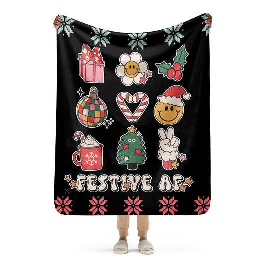 Retro Christmas Festive AF - Sherpa blanket