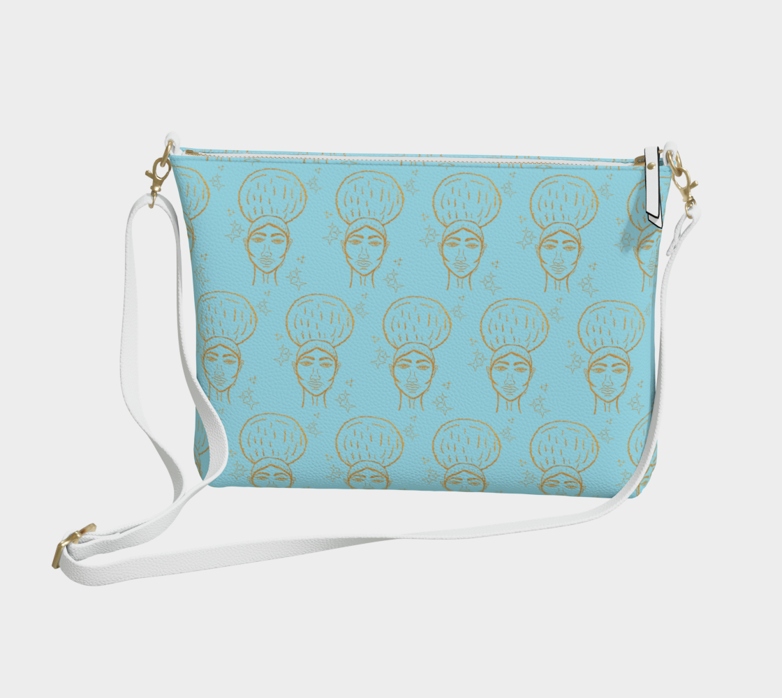 Afro Beauty Sparkle Pattern - Vegan Leather Crossbody - Lt. Blue