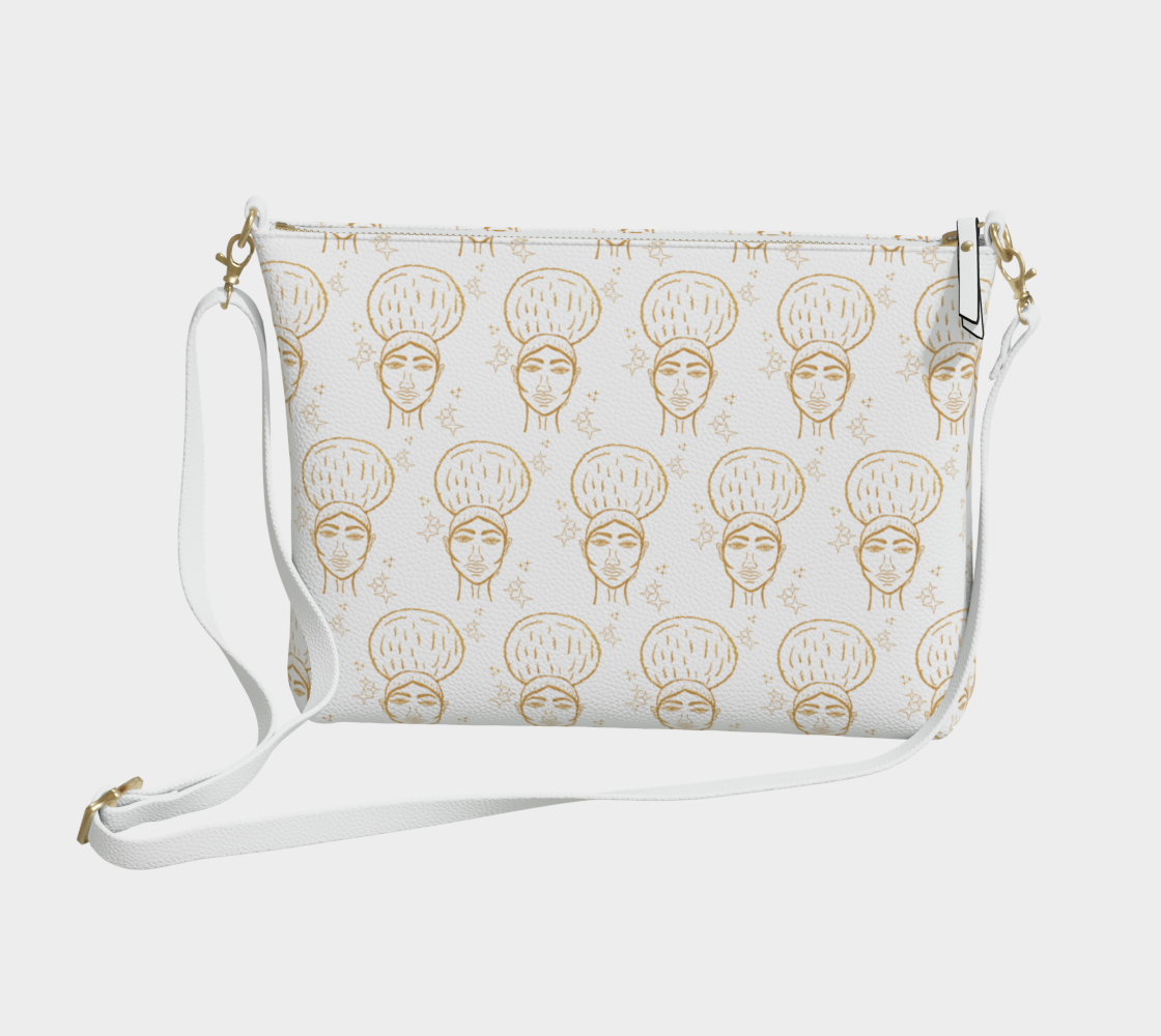 Afro Beauty Sparkle Pattern - Vegan Leather Crossbody - white