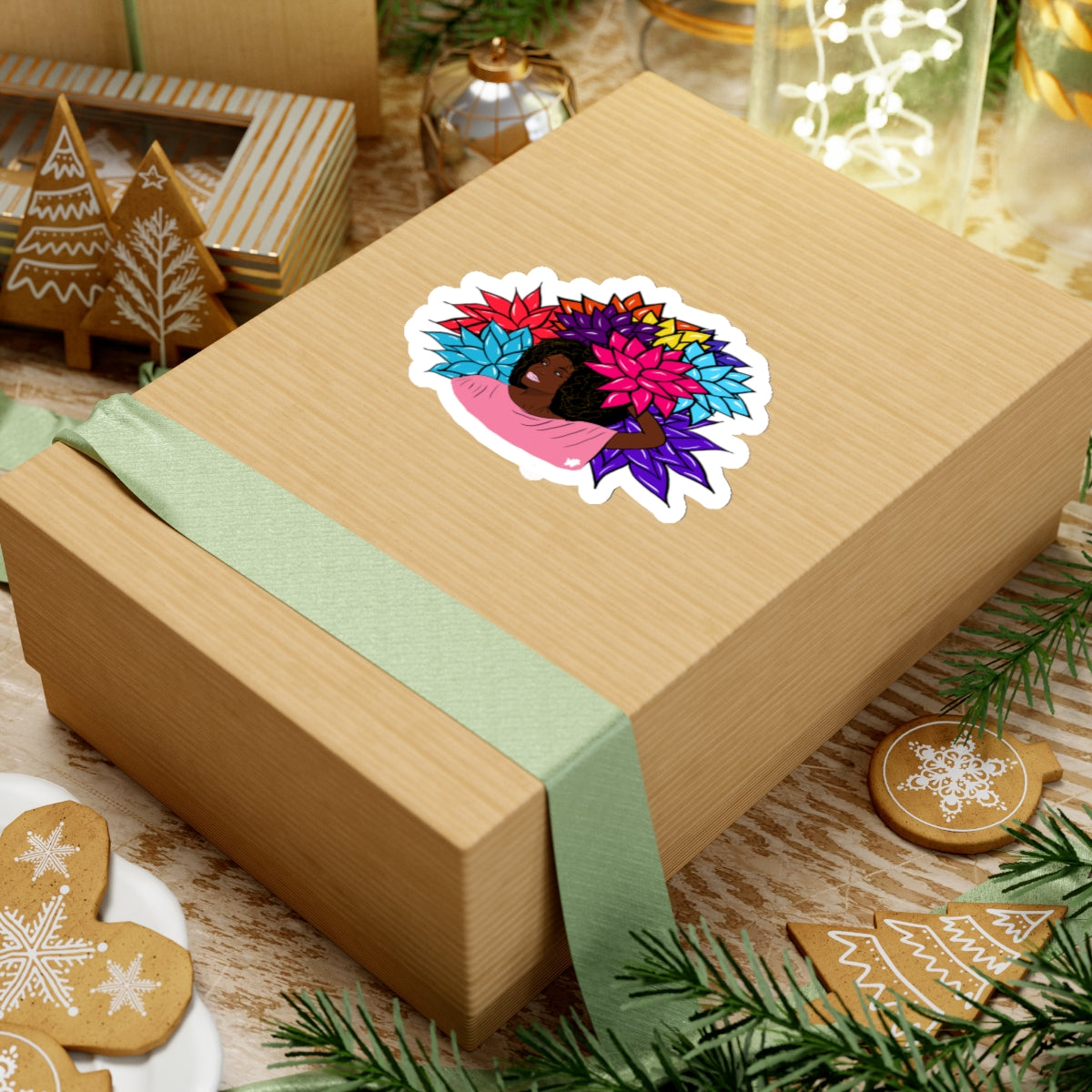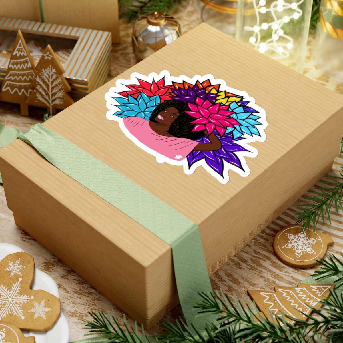 Beauty with Flower - Kiss-Cut Stickers