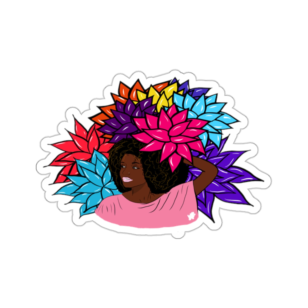 Add some beauty and flair to your life with Beauty with Flower - Kiss-Cut Stickers. These playful stickers feature a beautiful girl surrounded by colorful flowers, perfect for adding a touch of whimsy to any surface. Express your unique style with these fun and whimsical stickers!