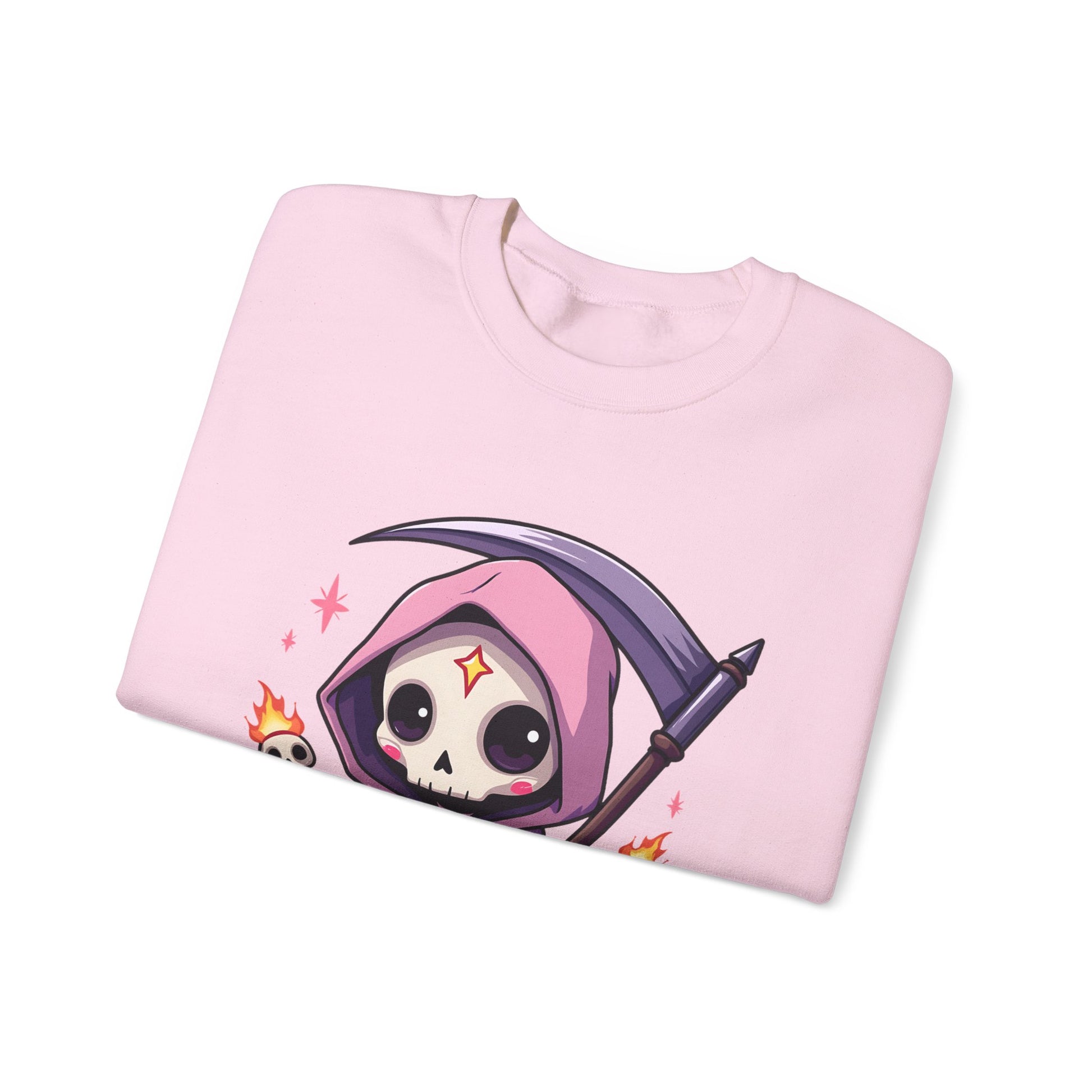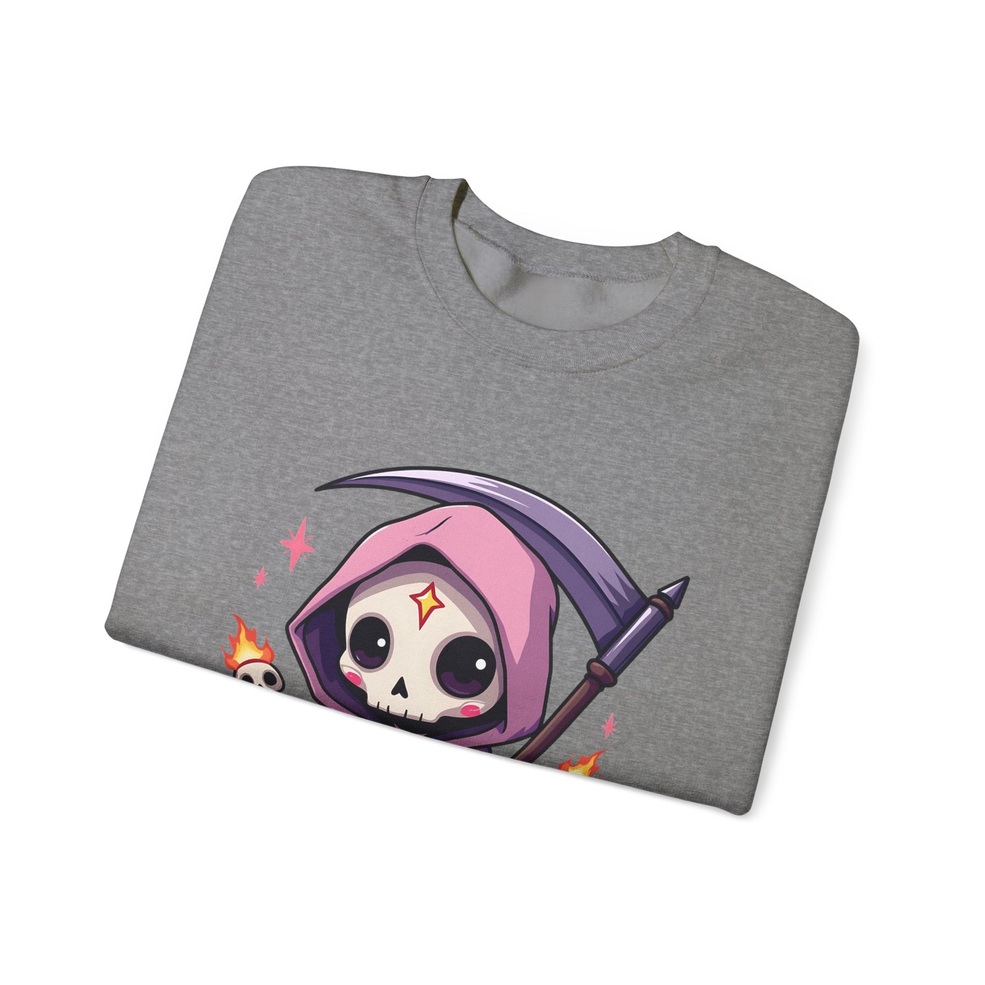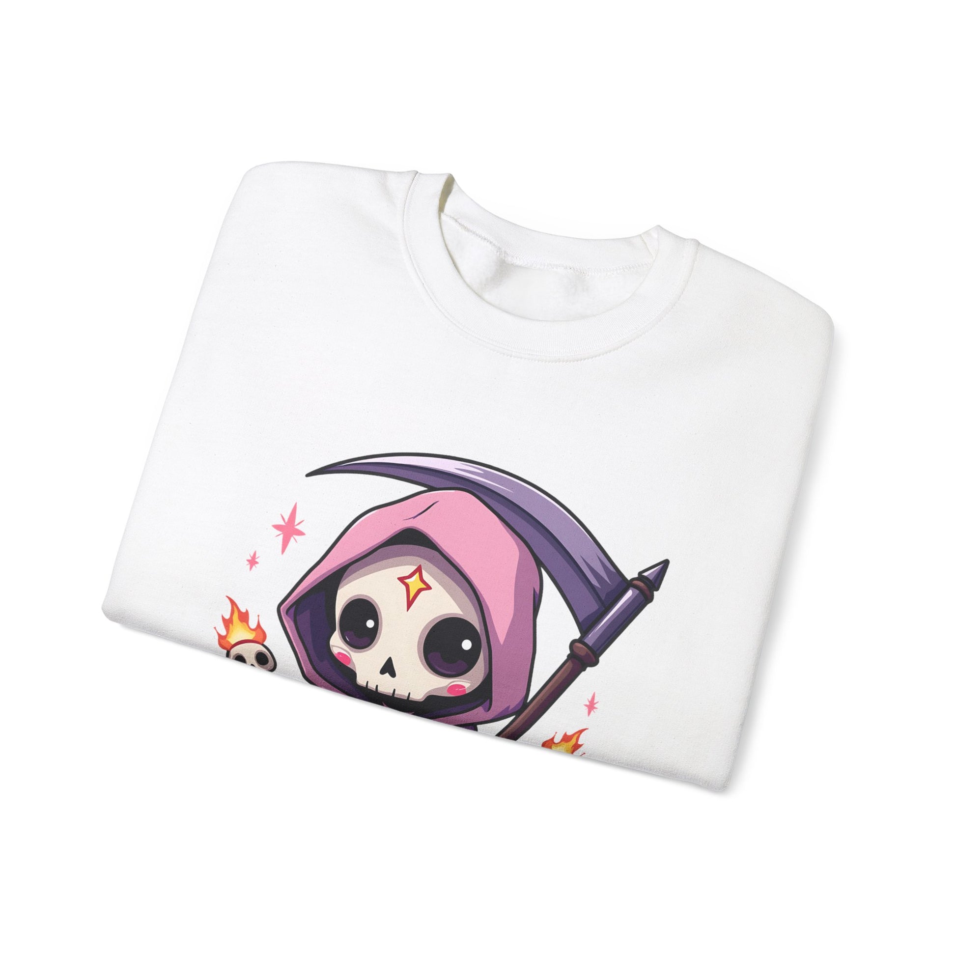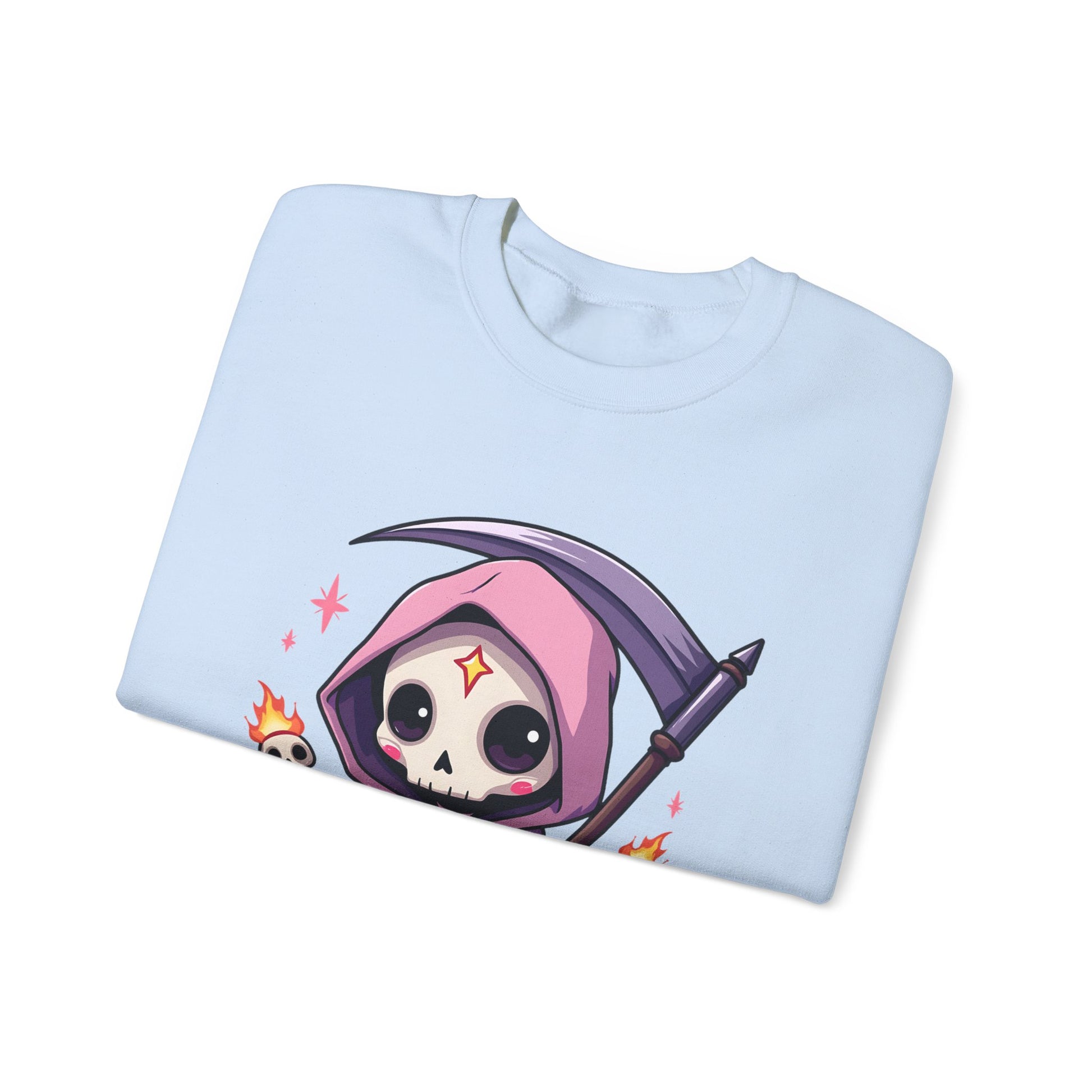This spooky sweatshirt features a design of Dead Inside But Still Cute, with a little grim. Perfect for those who love Halloween, horror, and all things creepy, spooky, and cute. This cozy sweatshirt is ideal for the colder months, offering a classic fit with a comfy crew neckline. It's great for anyone looking to add a touch of Halloween spirit to their wardrobe.