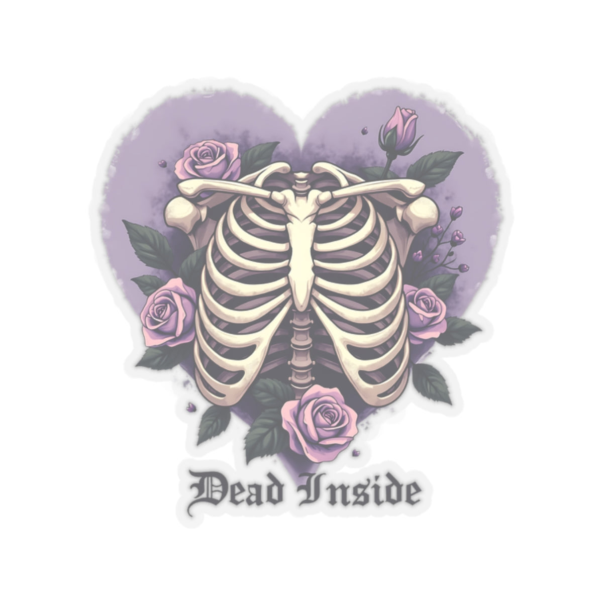 Show off your inner darkness with the Dead Inside Ribcage Heart Kiss-Cut Stickers. Featuring a skeleton ribcage, delicate roses, and a purple heart, these stickers are perfect for those who aren't afraid to embrace their twisted sense of humor.