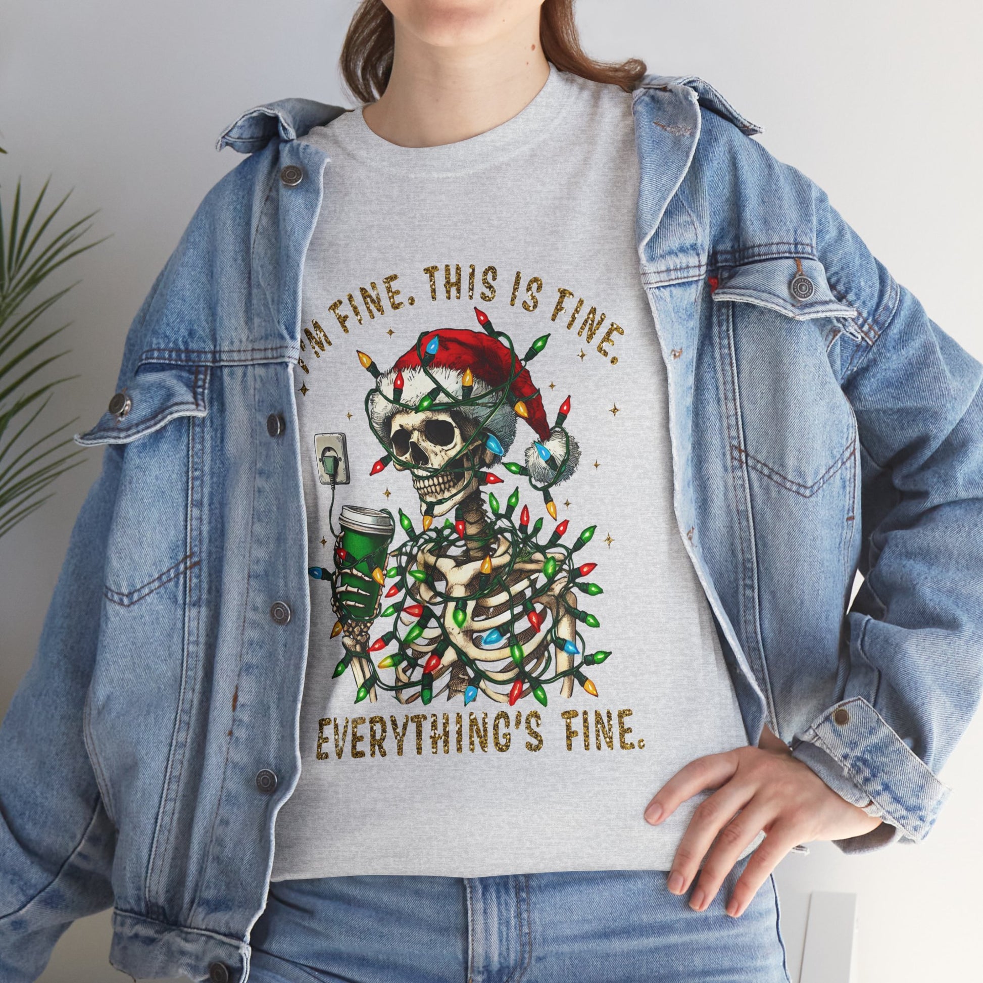 'I'm Fine. This Is Fine. Everything Is Fine.' 'is perfect for those who appreciate dark humor and want to add a touch of sarcasm to their wardrobe. Ideal for Christmas celebrations and fans of dark Christmas humor.