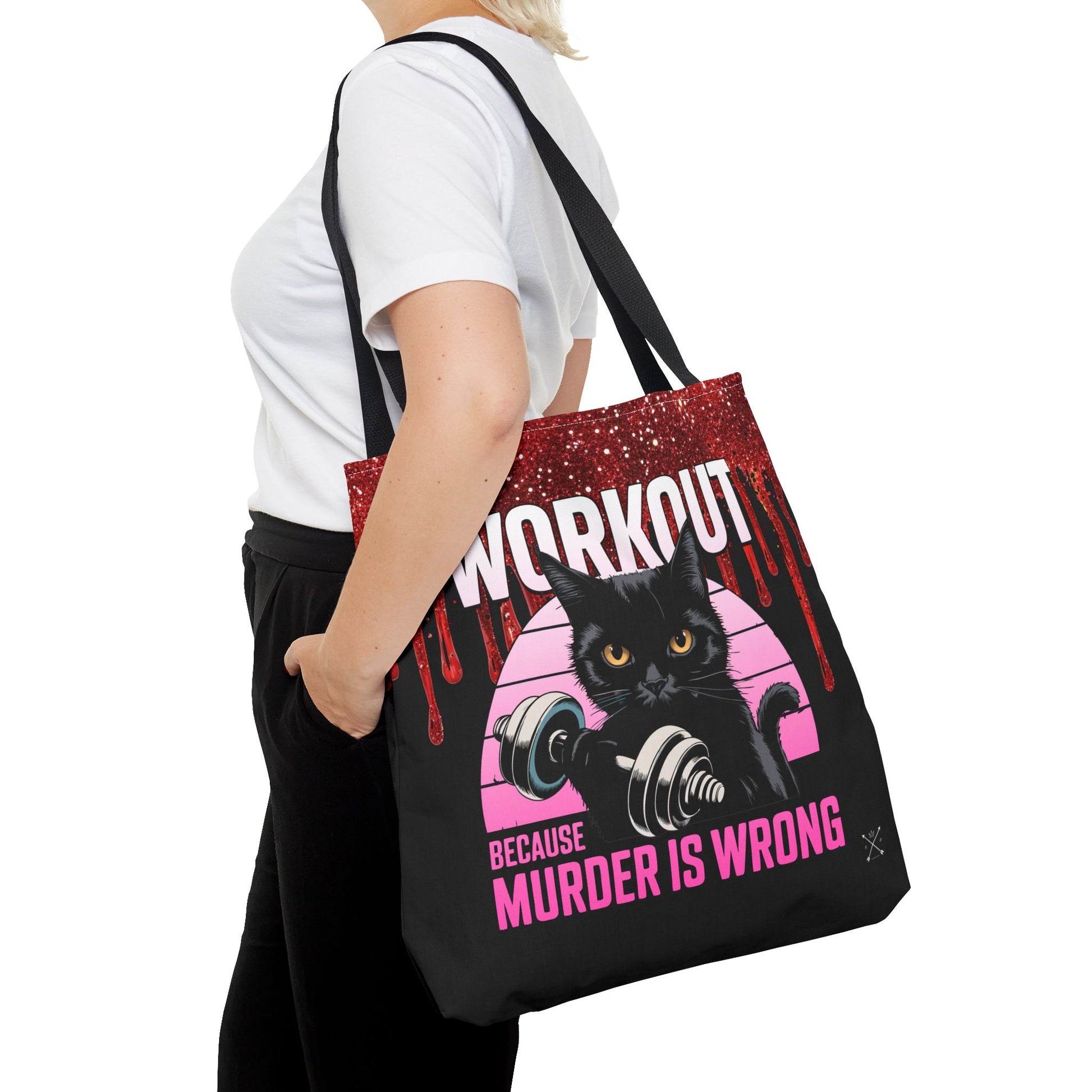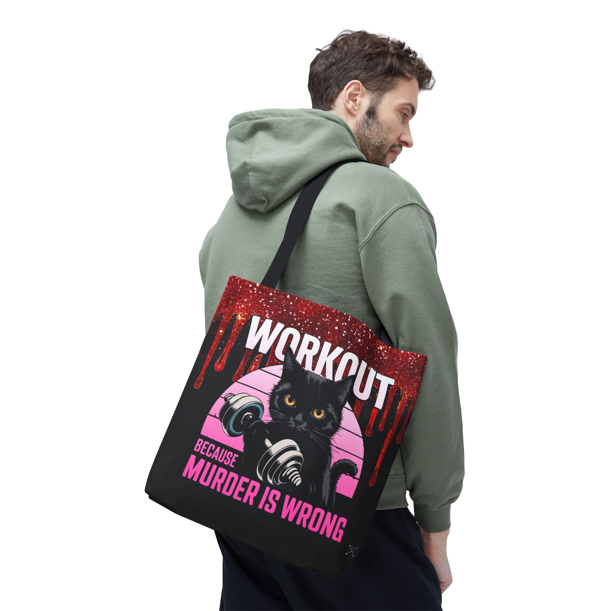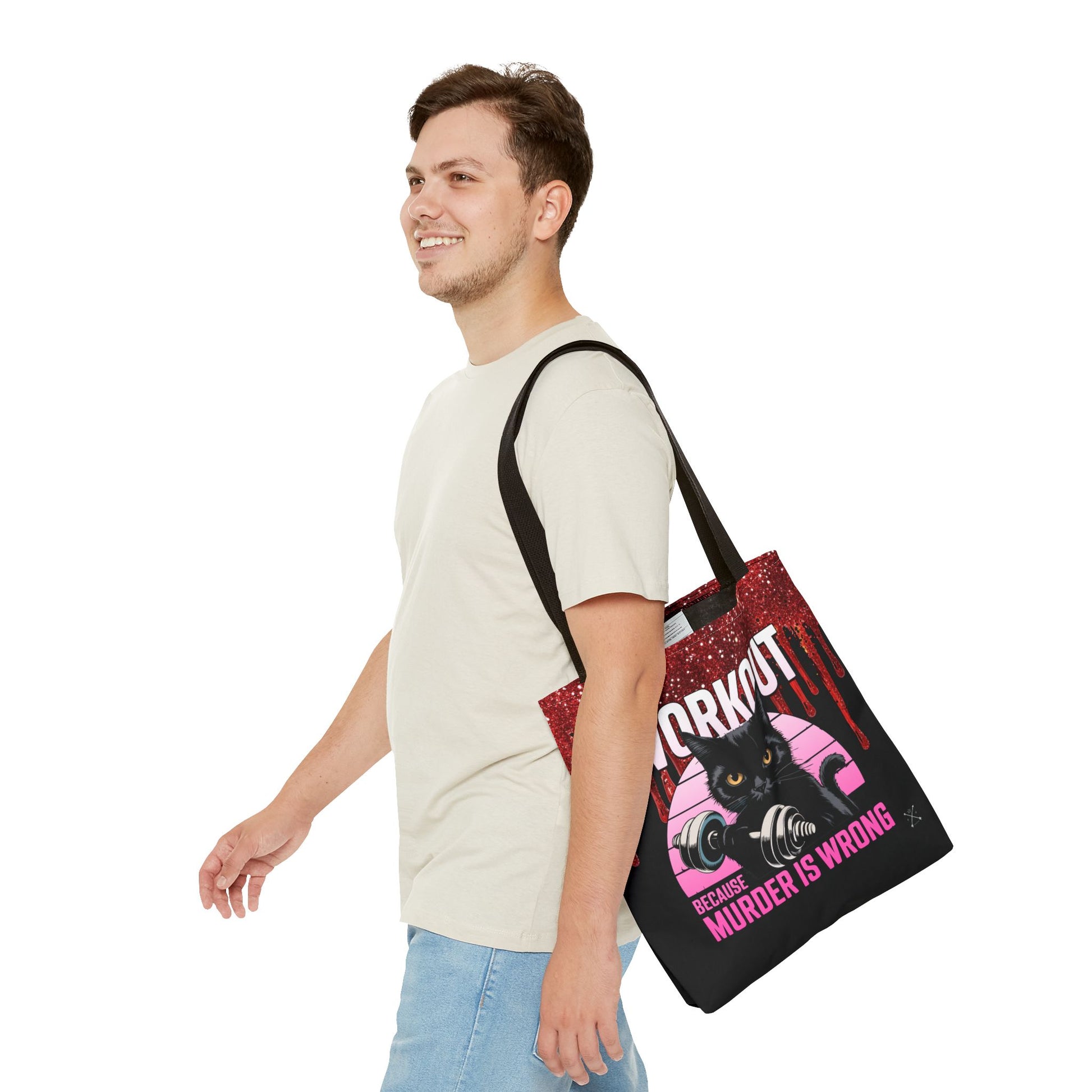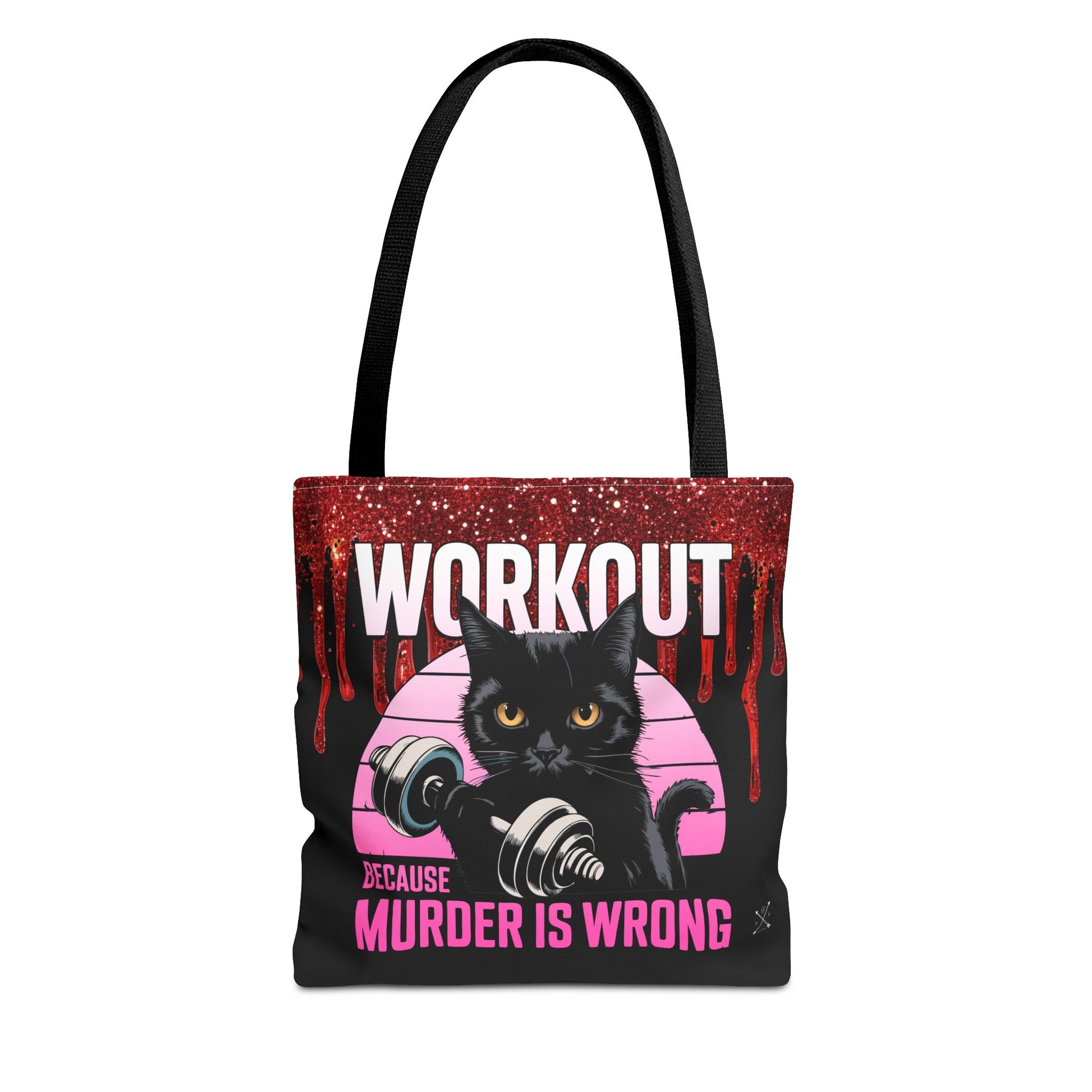 Tote Bag - Cat Design | 'Workout Because Murder is Wrong'