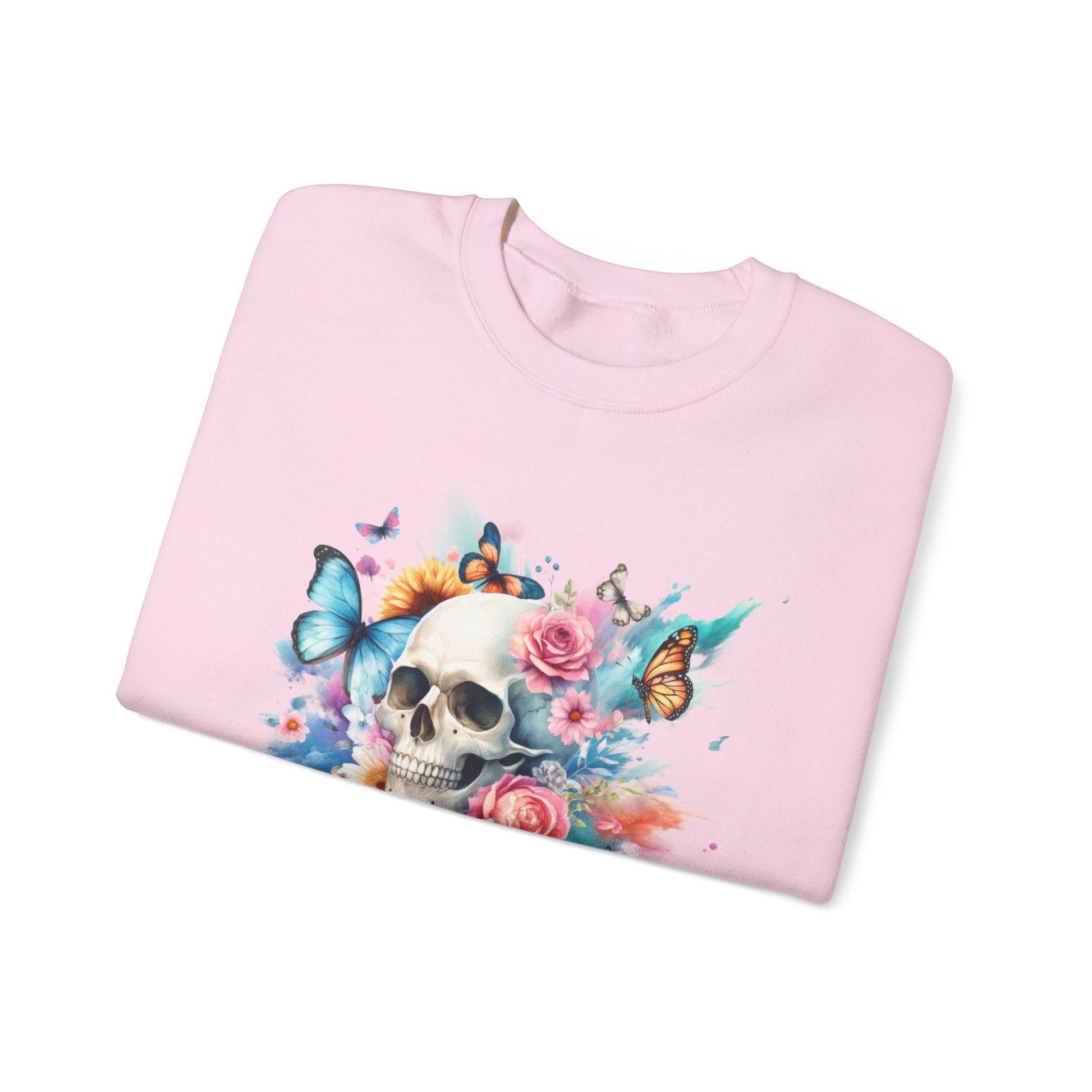 Watercolor Skull and Butterflies - Unisex Heavy Blend™ Crewneck Sweatshirt